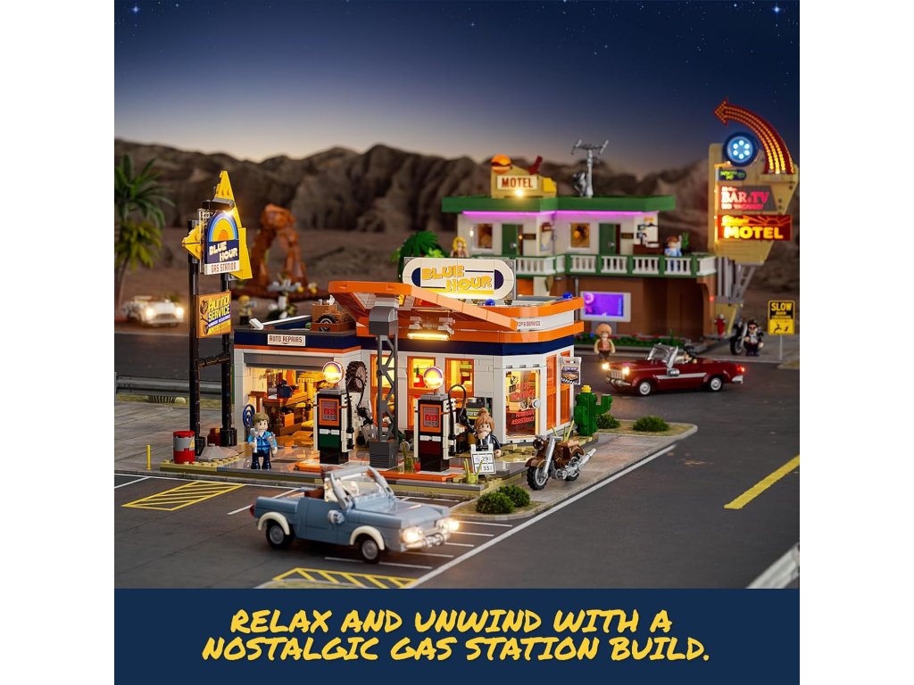 Ez a készlet az 1960-as évek amerikai útmeneti benzinkútjainak építészeti formavilágát adja vissza.