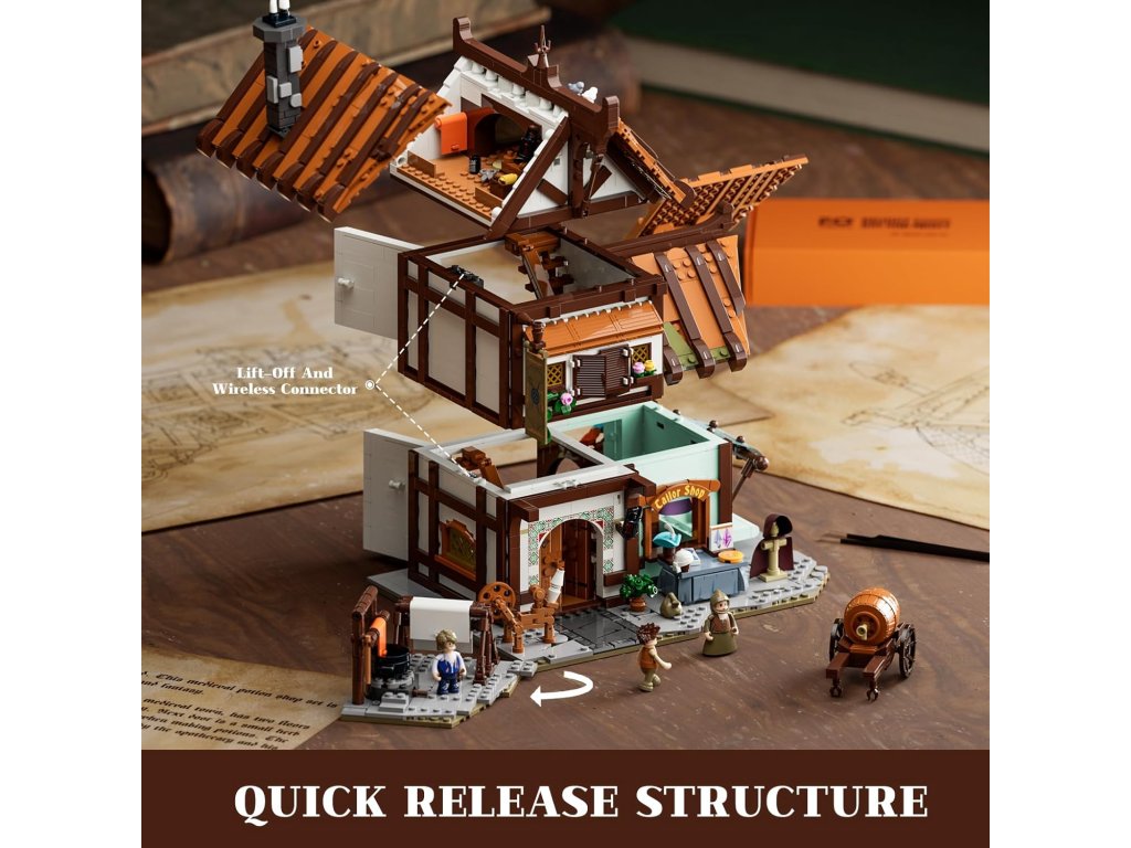 Funwhole - Középkori szabóműhely, moduláris épület, világítással, 1994 db építőelem, F9038