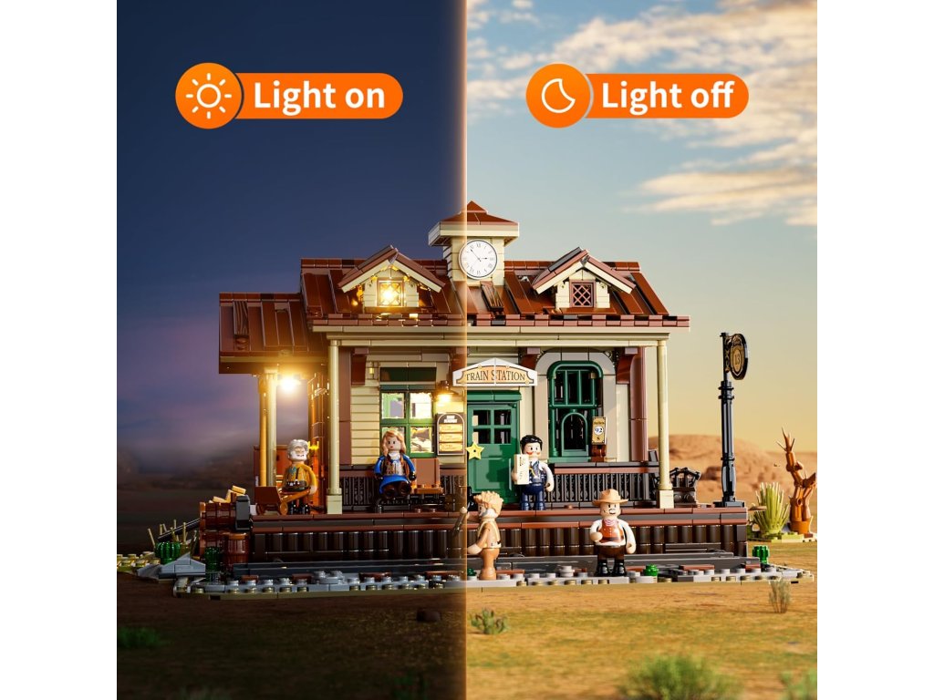 Egy részletgazdag autentikus vadnyugati vasútállomást rekonstruál a készlet, utasforgalmi és rakodóterekkel, leemelhető tetővel és számos interaktív részlettel.