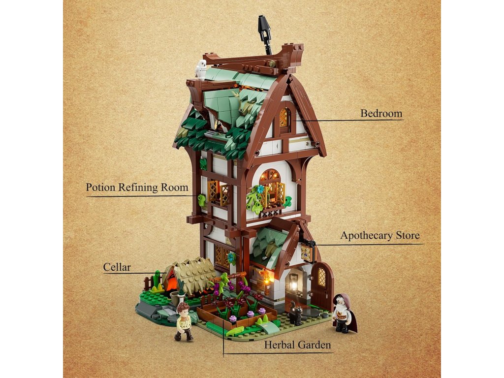 Funwhole - Középkori gyógyszerész háza, moduláris épület, világítással, 1470 db építőelem, F9024